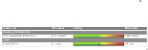 Ook kunnen wij verschillende andere zaken onderzoeken zoals bijvoorbeeld of er een tumor marker aanwezig is. Dit zit niet standaard in het ontlastingsonderzoek maar de patiënt wilde dit wel heel graag weten. Gelukkig was deze waarde niet verhoogd.